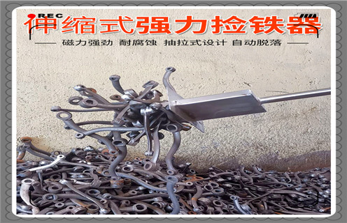 1、根据臂长自由调节高度,拉伸缩杆吸附物质料,自动掉落铁杂质,操作更简便。